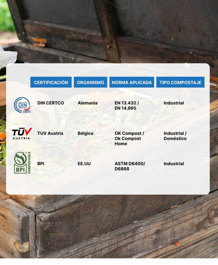 Para asegurar que un envase sea realmente compostable, debe contar con certificaciones internacionales que verifiquen su desempeño en el proceso de compostaje.