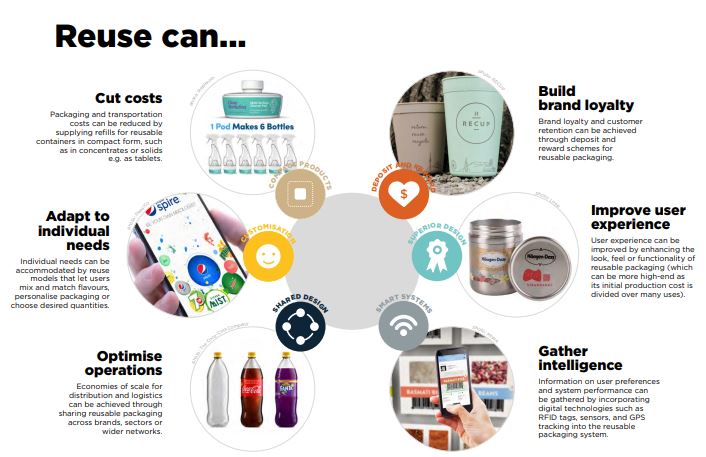 El reúso presenta una oportunidad de innovación para cambiar la forma en que pensamos el desarrollo de los envases y embalajes, con el objetivo de considerarlos como un activo de alto valor que puede ofrecer beneficios para consumidores y empresas.