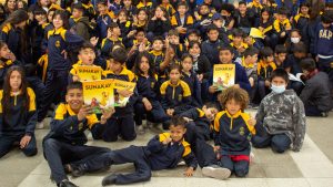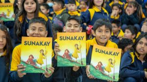 En paralelo, se hizo entrega de cuatro mil ejemplares del libro del mismo título en establecimientos educacionales de zonas costeras de las regiones de Antofagasta, Coquimbo, Valparaíso y Biobío. La actividad, a su vez, contempla la entrega de una guía para el trabajo de los docentes que invita a discutir y analizar junto a alumnas y alumnos la problemática y consecuencias de la contaminación de los océanos. Según sus autores, la prolífica y premiada dupla de creadores españoles compuesta por Meritxell Martí y Xavier Salomó, el libro Sunakay es una “oda al mar y un himno a la necesidad de proteger nuestro planeta”.
