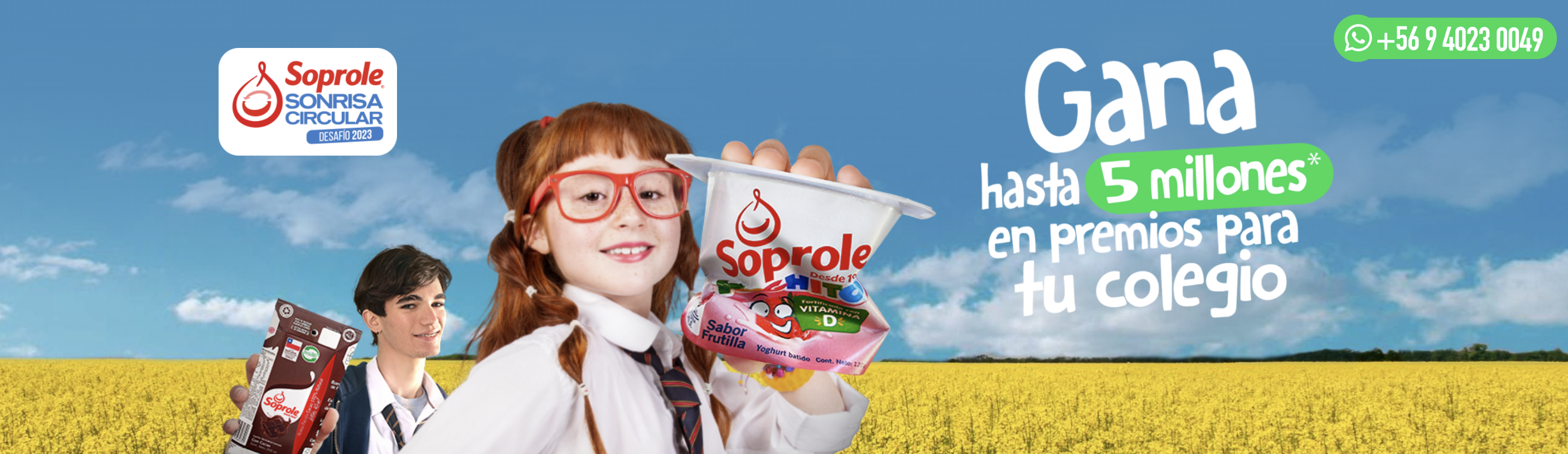 El Desafío Soprole Sonrisa Circular 2023 es el primer programa de reciclaje de este tipo en Latinoamérica y tiene como objetivo reciclar 30 millones de envases de yoghurt, postres, cajas de leche y jugo. Una campaña enfocada en niños, niñas y adolescentes de los colegios de todo Chile y que busca generar conciencia en torno al cuidado del medio ambiente y el reciclaje de sus envases, para dar una solución integral a los residuos de poliestireno (PS) que genera la industria láctea del país.